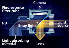落射熒光照明裝置和濾光塊系統(tǒng)采用了尼康專有的噪聲終止機制,信噪比得到了顯著提高,徹底消除雜散光,對具有高對比度和亮度的微弱熒光信號,可以順利捕獲。同時,熒光濾光塊的切換速度提升了2.5倍,與Ti系列同樣性能的濾光塊轉(zhuǎn)輪,光閘速度提升到1.4倍。