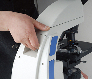 鏡體后側(cè)設(shè)計了搬動顯微鏡時的提手位置,確保顯微鏡移動時,安全,穩(wěn)固。