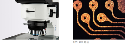 暗場觀察:將暗場照明拉桿拉到指定位置,即可使用暗場功能,可以觀察物體表面的各種劃痕、雜質(zhì)點及其他細(xì)微缺陷。內(nèi)置衰減片,減少明暗場切換時光線劇烈變換對眼睛的刺激。
