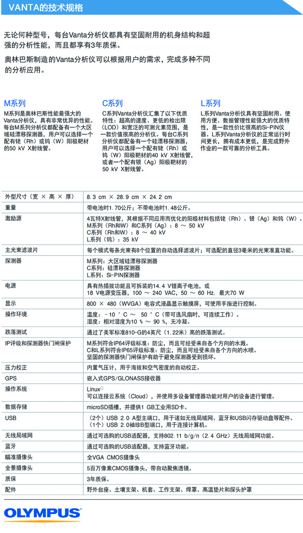 Vanta分析儀是奧林巴斯為用戶提供的先進的手持式X射線熒光(XRF)設(shè)備,可以為那些要求在野外環(huán)境獲得精準(zhǔn)分析水平的用戶,進行快速的元素分析和合金辨別。
