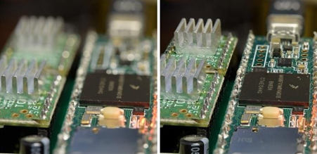 景深合成可以將因景深不足而局部模糊的多張圖像,合 成為全部清晰的一張圖像。下圖為合成前后的效果對(duì)比。